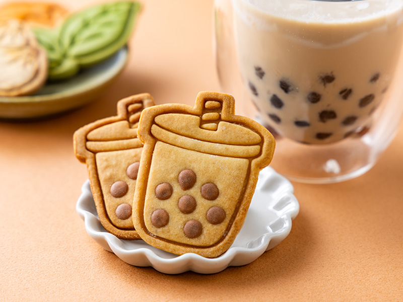 台灣最熱賣的飲品搖身為可愛餅乾。柔和奶茶色、、Q彈珍珠立體壓紋彩繪