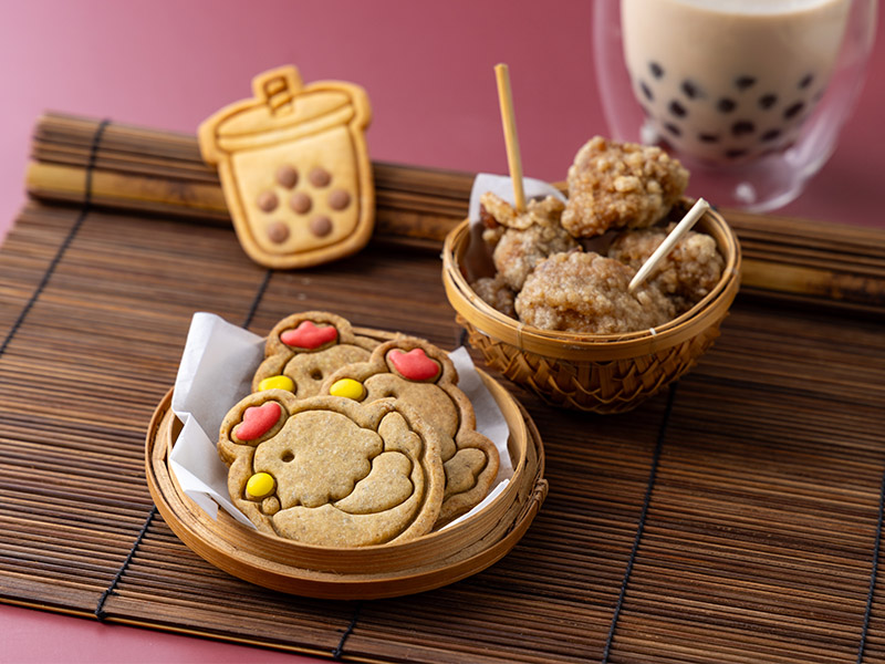 從珍珠奶茶、鹹酥雞到台灣綠茶及鳳梨,六款造型餅乾都代表經典台灣味。