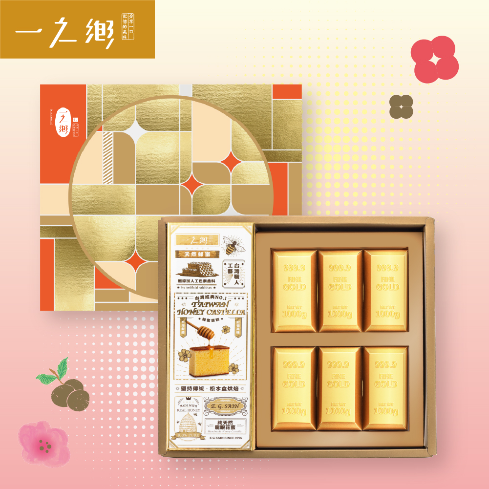以蜂蜜的自然甜潤為底,蛋糕綴以金色包裝的典雅格調。