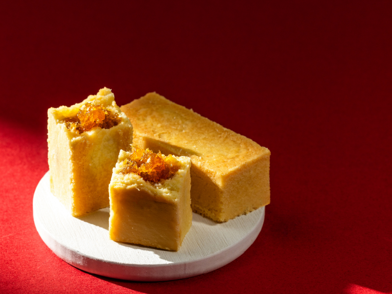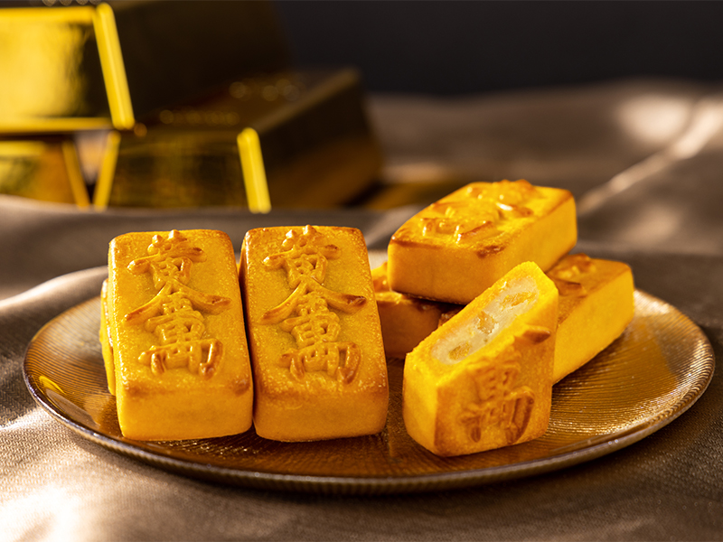 金黃細緻的奶皇內餡融合金沙鹹香,口感綿密而富層次。外型如金磚,寓意招財添福,新春必備的好運甜點。